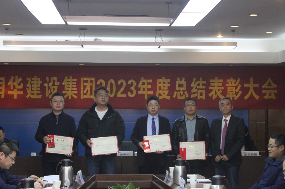 大会分为两项议程,第一项议程为年度优秀表彰。首先由集团副总经理毛鹡和顾海峰分别宣读了《关于表彰二〇二三年度优秀员工、优秀管理者及优秀部门的通知》和《关于表彰2023年度证件获得者及论文、专利、工法、QC小组的决定》。随后进行优秀颁奖仪式,集团高层领导分别为优秀员工、优秀管理者及优秀部门代表颁发荣誉证书、发放奖金,并合影留念。接着,年度优秀员工代表许梦寒和年度优秀管理者代表杨后伟上台发言,与大家分享了2023年工作总结与获奖感悟。