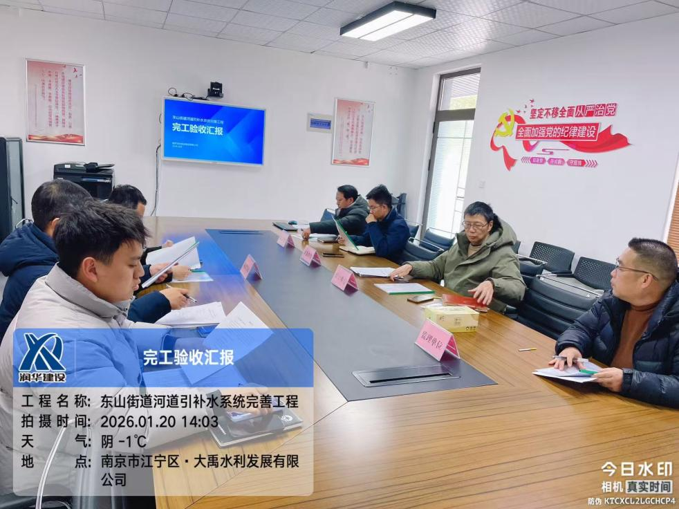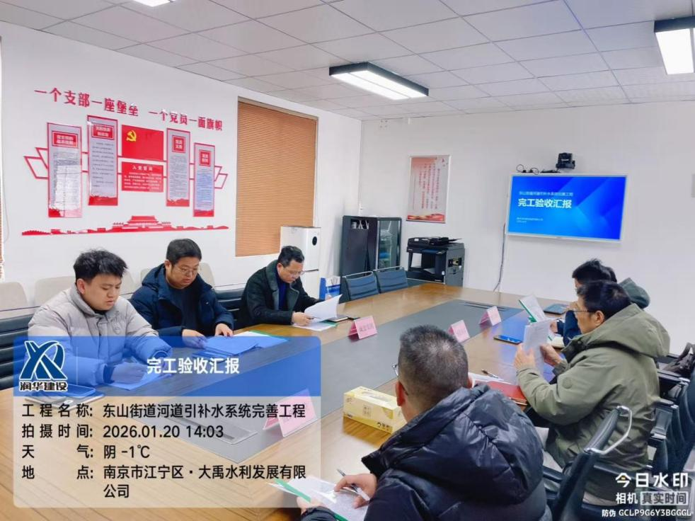2026年1月20日,由集团承建的东山街道河道引补水系统完善工程(以下简称“该工程”)完工验收会顺利召开,通过现场检查、会议汇报等环节,参建各方一致同意该工程成功通过交工验收。